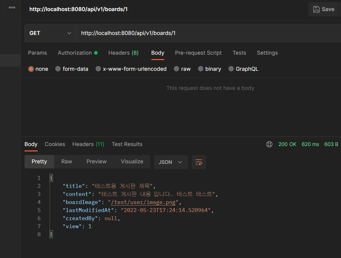 자 모두 마쳤다. 이제 다시 postman으로 다시 테스트를 해보자