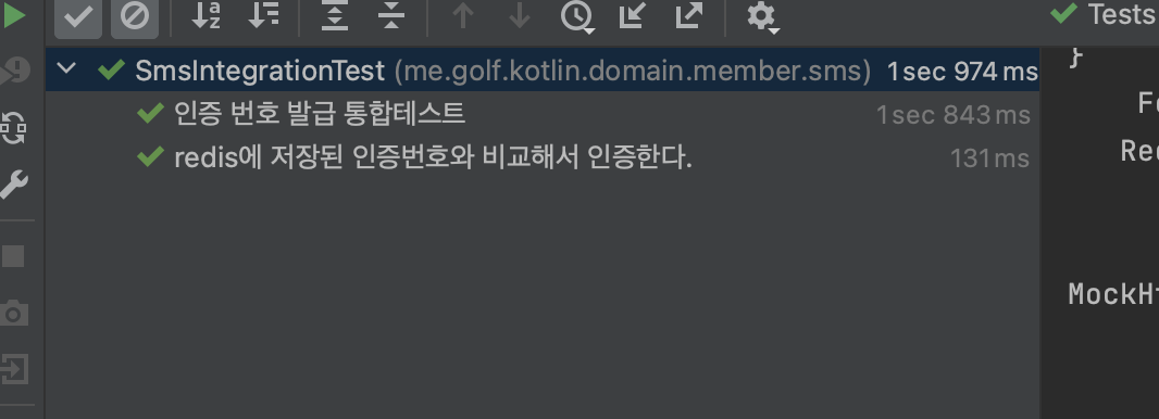 위 코드에서 phoneNumber key에 저장된 secureNumber를 가져와 매칭 유무를 반환해줘야했습니다. 하지만 이를 확인하기 위한 테스트코드에서 계속해서 인증번호를 찾을 수 없다는 오류가 발생하였고 원인을 굉장히 오랫동안 찾았던 것 같습니다.
