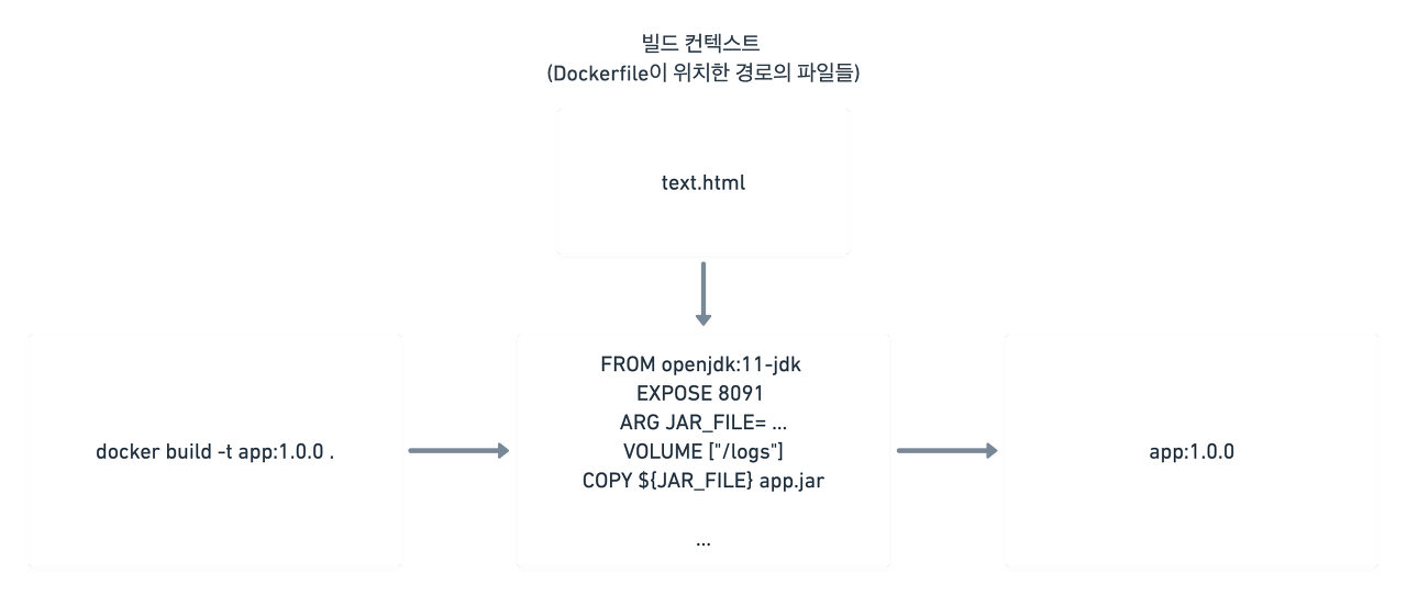 - 빌드 컨텍스트를 읽어드립니다. 이때 Dockerfile에 위치한 각종 파일 소스코드 등을 담고 있는 디렉터리를 빌드 컨텍스트라고 합니다.