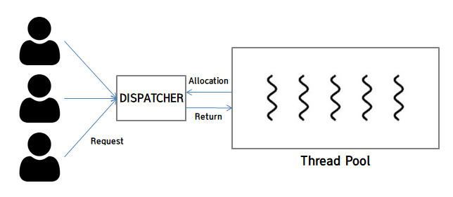 그렇기 때문에 Thread pool은 JVM 기반 언어와 이를 이용해 만들어진 애플리케이션에서는 선택이 아닌 필수 입니다. 대표적으로 Spring 같은 경우 tomcat의 200개의 이미 만들어진 Thread를 이용하여 OS의 커널 스레드를 더 이상 생성하지 않고 요청 시 이 Thread들을 이용하여 요청을 처리합니다. 그렇기 때문에 매 요청 시 마다 Thread를 생성하지 않아 요청을 보다 빠르게 처리가 가능합니다. 또한 Thread를 사용하고 해제가 아닌 반납과 재사용 개념이기 때문에 해제에 대한 오버헤드가 발생하지 않습니다.