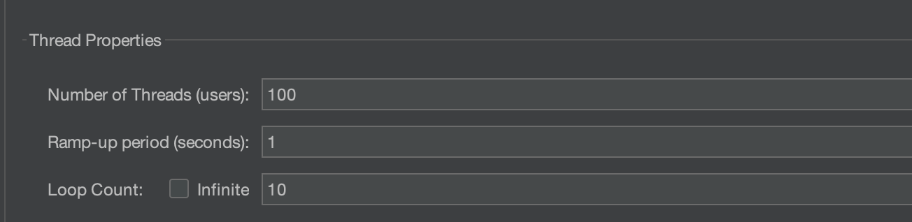 100명이 10번의 루프를 돌며 요청을 보내고 있고 초당 요청으로 설정해두었습니다.