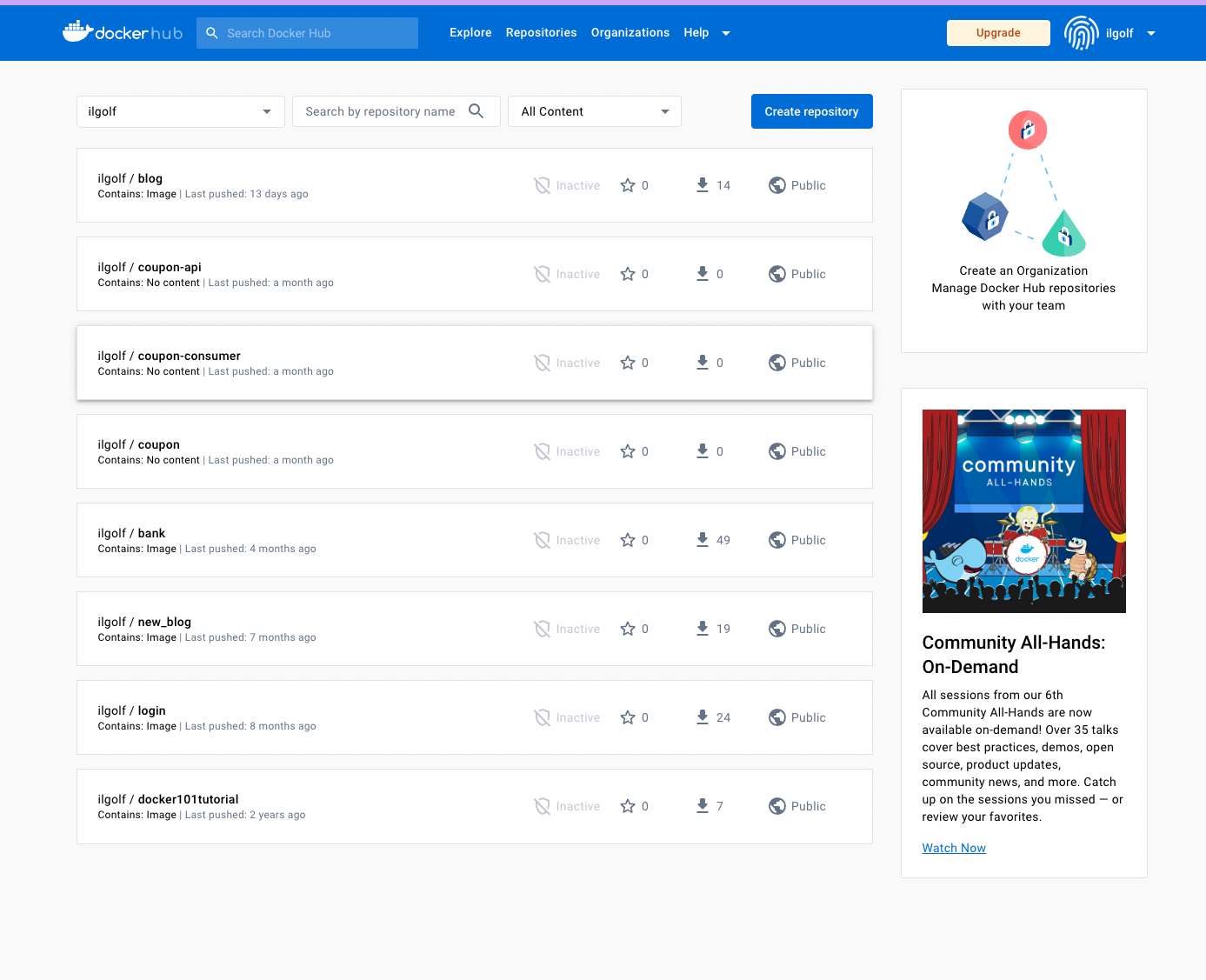 dockerhub는 이미지를 저장할 수 있게 docker에서 무료로 제공해줍니다.