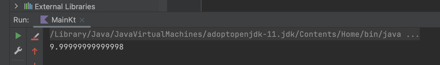 다음 코드는 0.1을 100번 더하는 연산입니다. 연산을 하면 당연히 100번 0.1을 더했으므로 10이 나와야합니다. 하지만 결과 값은 다음과 같습니다.